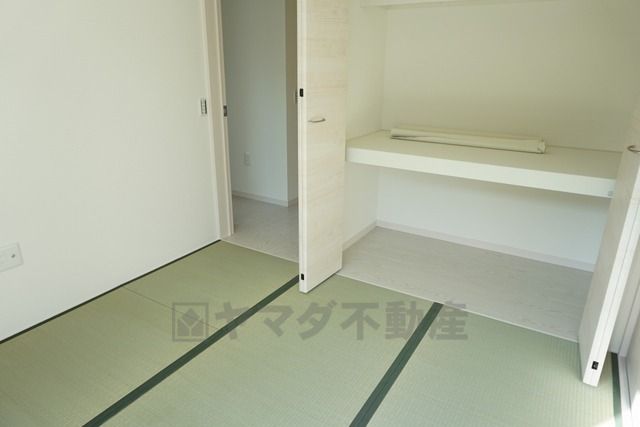 同仕様写真。リビングからの続き間として和室をご用意しました。普段はリビングとつなげて開放的なスペースとして、来客時には客間としてお使いいただけます。