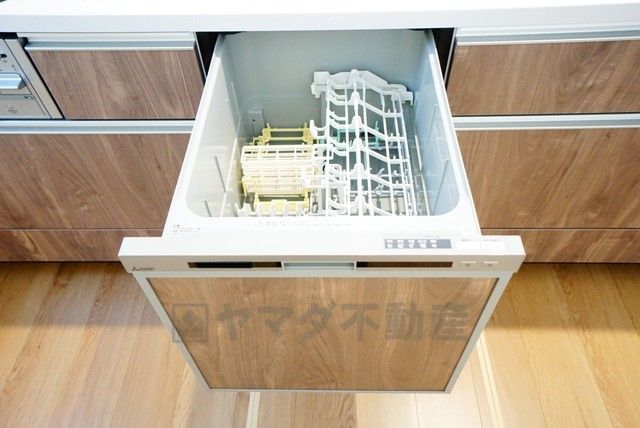食事の後の手間を解消する食器洗い乾燥機付。冬場の洗い物で手荒れの悩みもなくなります。手洗いよりも節約できて便利。