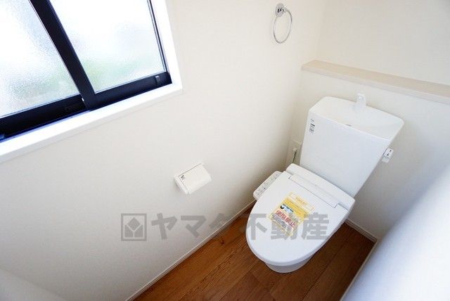 温水洗浄機付トイレです。節水機能もあるので、安心して使えますね。もちろん、1階2階の2ヶ所にトイレがあるので、忙しい朝にもゆとりができますね。