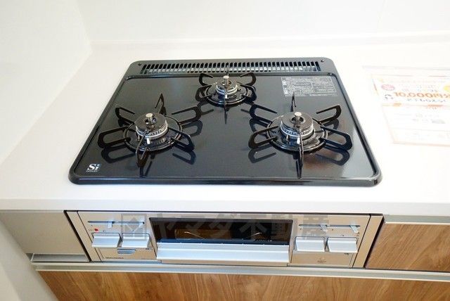 複数の調理を一度に行うことができる3口コンロ。効率よくお料理が出来ます。毎日のお料理も楽しくなりますね^^