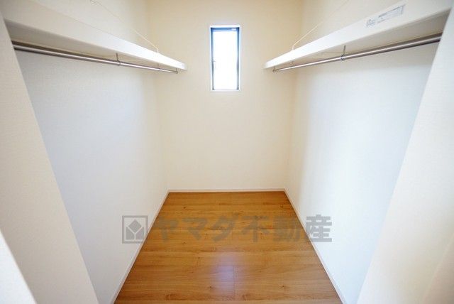 収納力豊富なウォークインクローゼット。洋服や小物などを1箇所にまとめて美しい収納を実現します。スーツケースのような大型の荷物も置けます^^