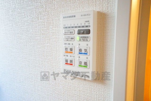 雨の日の洗濯も安心できる浴室暖房乾燥機付き浴室。リモコンで操作もボタン1つで簡単。