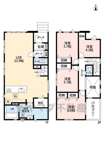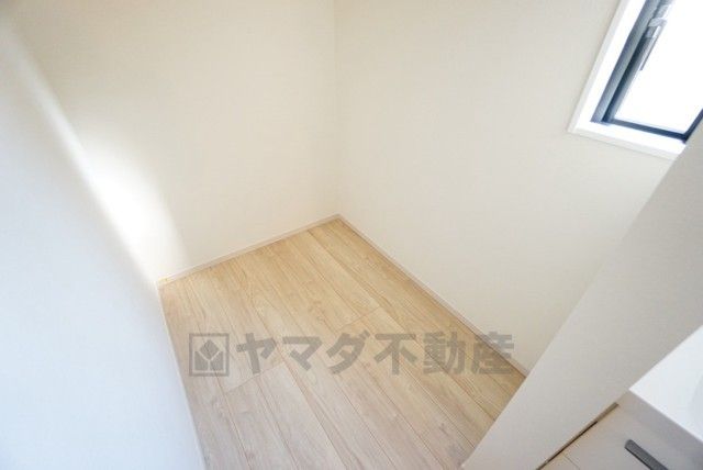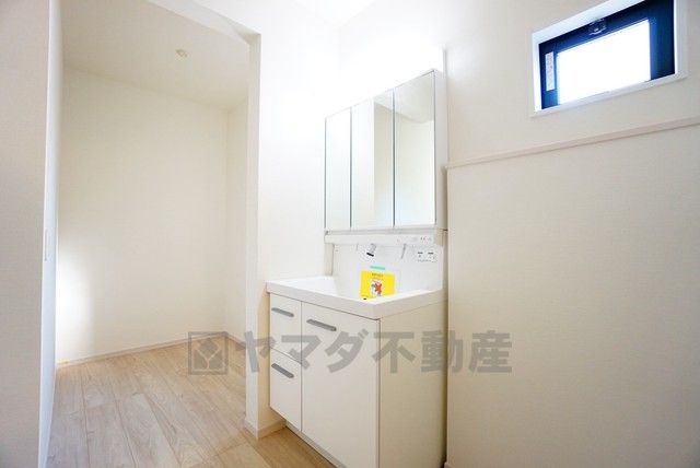 洗面脱衣室内に便利なフリースペースを確保。 収納棚を設ければタオルや日用品のストック置場として活躍します。 ランドリースペースや室内物干しコーナーとしても使える、家事動線を考えた設計です。