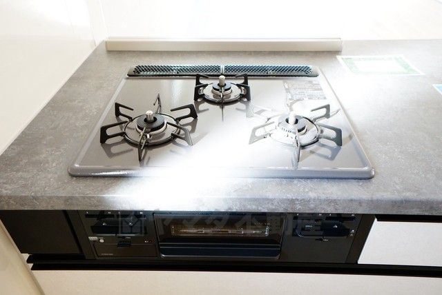 複数の調理を一度に行うことができる3口コンロ。効率よくお料理が出来ます。毎日のお料理も楽しくなりますね^^