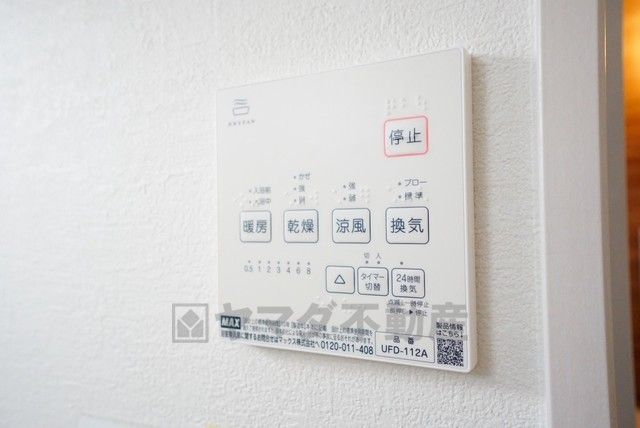 雨の日の洗濯も安心できる浴室暖房乾燥機付き浴室。リモコンで操作もボタン1つで簡単。