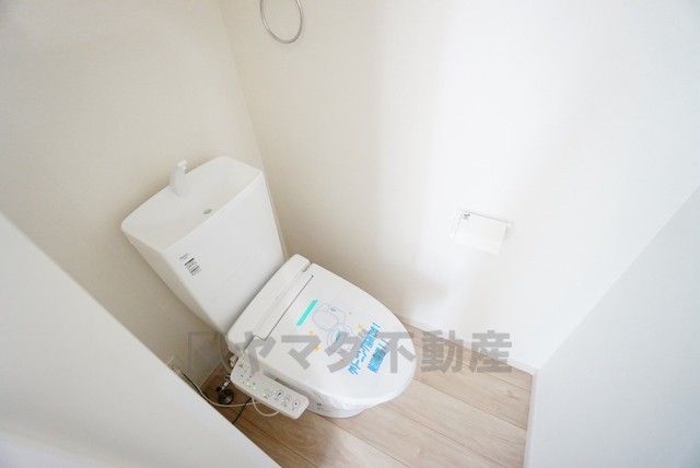 温水洗浄機付トイレです。節水機能もあるので、安心して使えますね。もちろん、1階2階の2ヶ所にトイレがあるので、忙しい朝にもゆとりができますね。