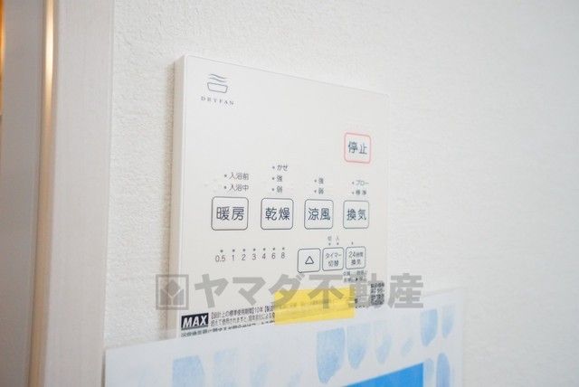 雨の日の洗濯も安心できる浴室暖房乾燥機付き浴室。リモコンで操作もボタン1つで簡単。