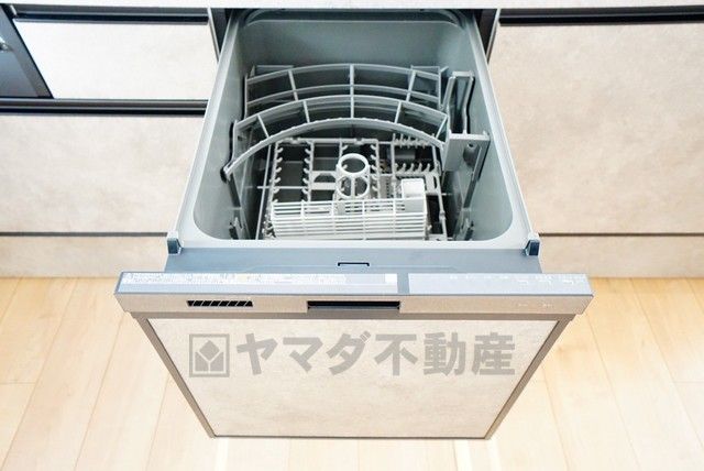 食事の後の手間を解消する食器洗い乾燥機付。冬場の洗い物で手荒れの悩みもなくなります。手洗いよりも節約できて便利。