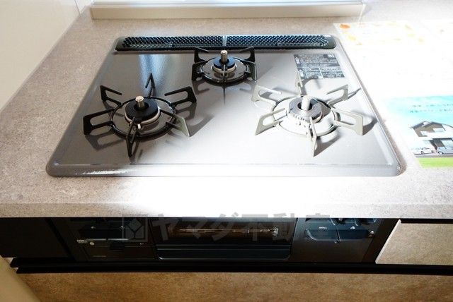 複数の調理を一度に行うことができる3口コンロ。効率よくお料理が出来ます。毎日のお料理も楽しくなりますね^^
