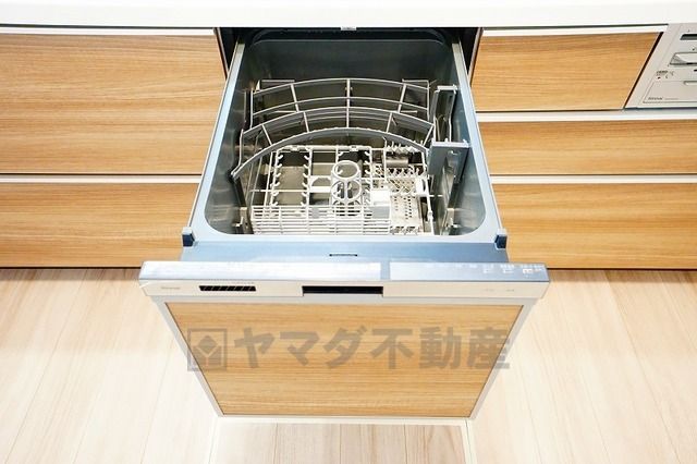 食事の後の手間を解消する食器洗い乾燥機付。冬場の洗い物で手荒れの悩みもなくなります。手洗いよりも節約できて便利。