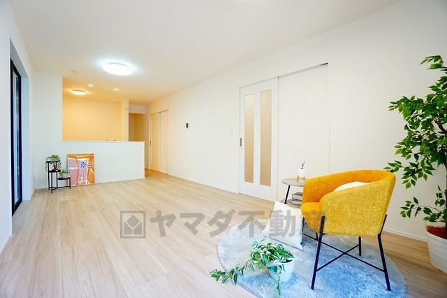 家具はイメージです。大きな窓のあるリビングは、陽光あふれる明るい空間です。居心地良く、ご家族皆がゆったり寛げる憩いの空間となりそうです。