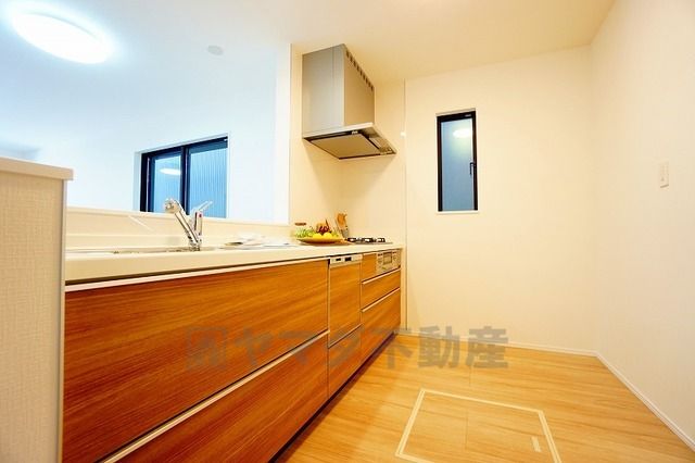 対面式カウンターキッチンからはお子様の様子が見守れます。ダイニングへの配膳や調理の時便利なカウンター付き。