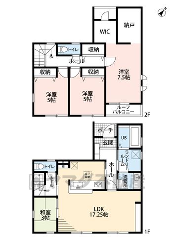 LDK17.2畳(1F)、和3畳(1F)、洋5畳(2F)、洋7.5畳(2F) |