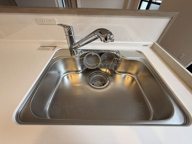 大きなお鍋も楽々洗える幅の広いシンクです^^ステンレスシンクなので簡単にお掃除できますよ。洗剤やスポンジもすっきりできる収納付き。
