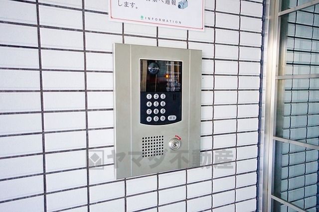 マンションのエントランスに防犯カメラ付き。マンション内のトラブル・犯罪の抑止効果があり、防犯性アップ。