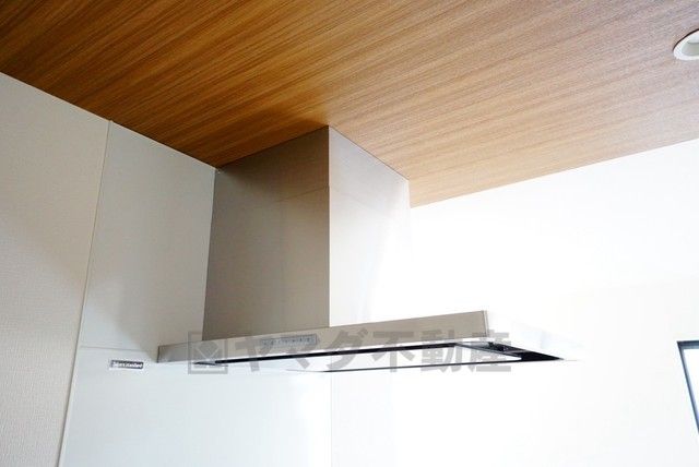 風量が弱・強と切替え可能なレンジフードが調理中の煙をしっかり吸い込みます。手元を照らすライト付きです。