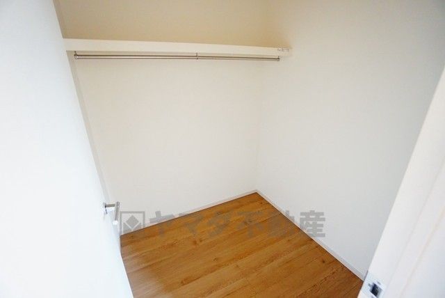 季節物の衣類もスッキリ収納できるウォークインクローゼット。クローゼット内で洋服のコーディネートから着替えまで中で出来るので、部屋が散らかりにくいです。