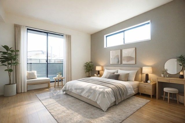 家具はイメージです。寛ぎの時間を紡ぎだす主寝室は、大型ベッドを置いても余裕の広さを確保しています。
