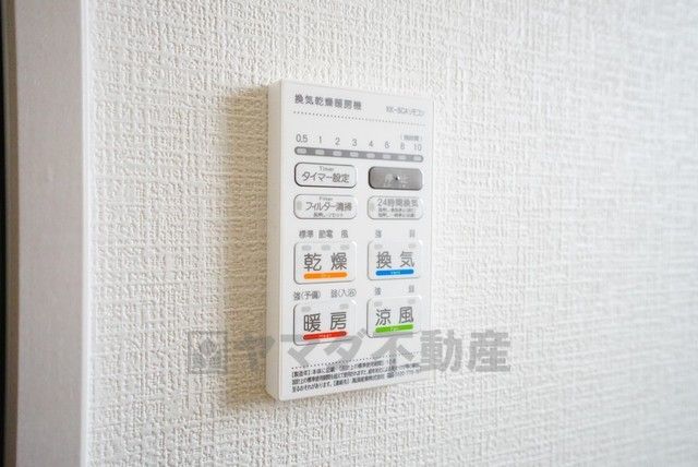 雨の日の洗濯も安心できる浴室暖房乾燥機付き浴室。リモコンで操作もボタン1つで簡単。