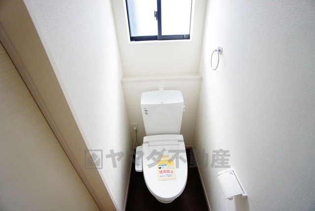 温水洗浄機付トイレです。節水機能もあるので、安心して使えますね。もちろん、1階2階の2ヶ所にトイレがあるので、忙しい朝にもゆとりができますね。