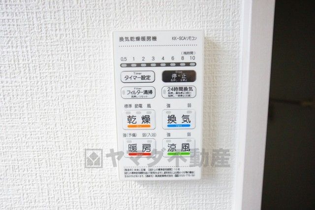 雨の日の洗濯も安心できる浴室暖房乾燥機付き浴室。リモコンで操作もボタン1つで簡単。