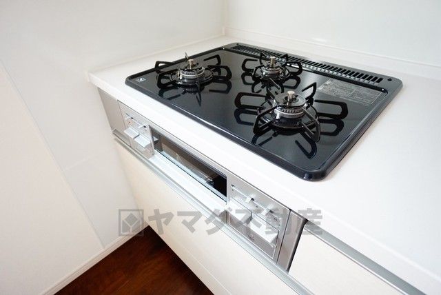 複数の調理を一度に行うことができる3口コンロ。効率よくお料理が出来ます。毎日のお料理も楽しくなりますね^^