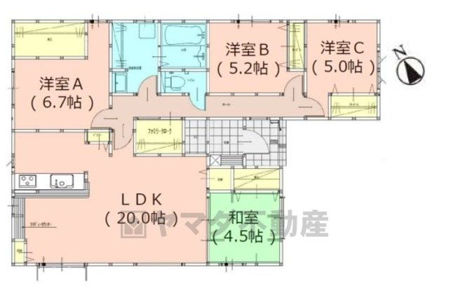 LDK20畳(1F)、和4.5畳(1F)、洋5畳(1F)、洋5.2畳(1F)、洋6.7畳(1F) |