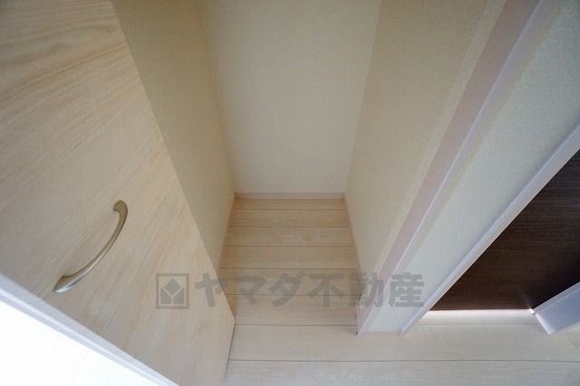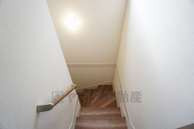 同仕様写真。小さなお子様やご高齢の方でも安心できる、手すり付き階段。段差も低めで設定されており、安全性にも優れています。