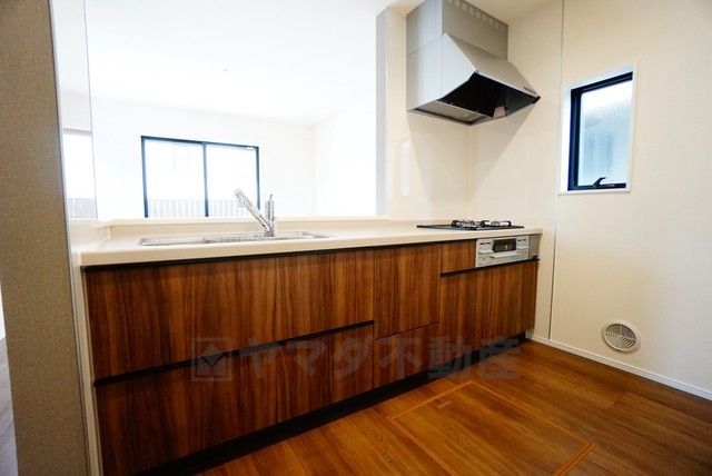 同仕様写真。対面式カウンターキッチンからはお子様の様子が見守れます。ダイニングへの配膳や調理の時便利なカウンター付き。