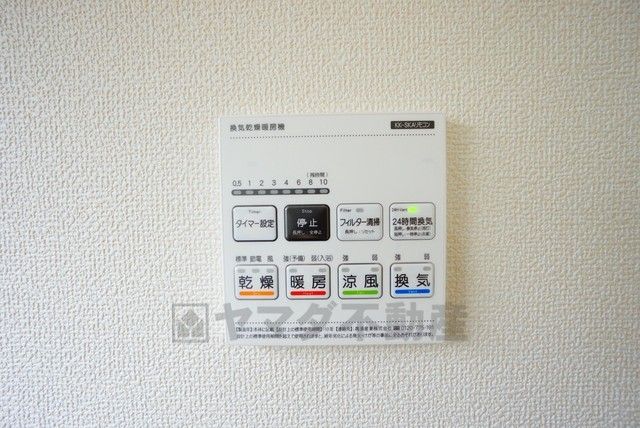 雨の日の洗濯も安心できる浴室暖房乾燥機付き浴室。リモコンで操作もボタン1つで簡単。