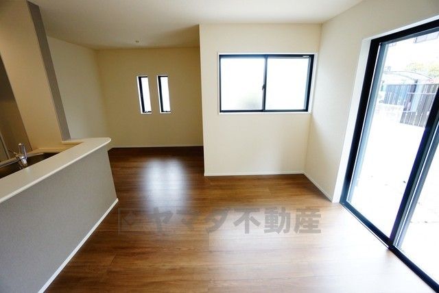 大きな掃き出し窓のあるリビングは、陽光あふれる明るい空間です。ゆったりと寛げる憩いの場となりそうです。