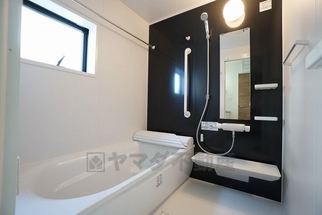 同仕様写真。1日の疲れを癒すくつろぎのバスルーム。足を伸ばしてもゆったりと入れるサイズです。お子様と一緒にお風呂に入っても狭くないですね^^