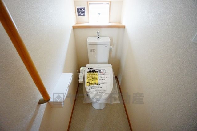 同仕様写真。温水洗浄機付トイレです。節水機能もあるので、安心して使えますね。もちろん、1階2階の2ヶ所にトイレがあるので、忙しい朝にもゆとりができますね。