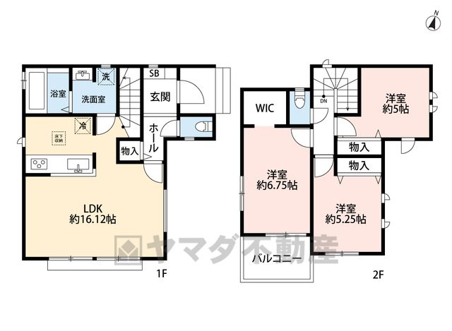 LDK16.1畳(1F)、洋5畳(2F)、洋5.2畳(2F)、洋6.7畳(2F) |