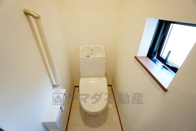 温水洗浄機付トイレです。節水機能もあるので、安心して使えますね。もちろん、1階2階の2ヶ所にトイレがあるので、忙しい朝にもゆとりができますね。