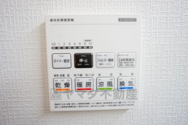 雨の日の洗濯も安心できる浴室暖房乾燥機付き浴室。リモコンで操作もボタン1つで簡単。