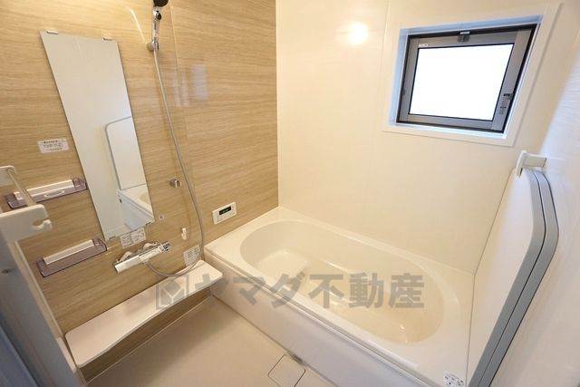 同仕様写真。1日の疲れを癒すくつろぎのバスルーム。足を伸ばしてもゆったりと入れるサイズです。お子様と一緒にお風呂に入っても狭くないですね^^