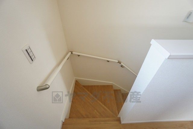 同仕様写真。お子様も高齢の方も安心して上り下りができる手摺がついた安心設計です。 階段には小窓を配置しました。日中でも暗くなりがちな階段下が明るくなり安全ですね。