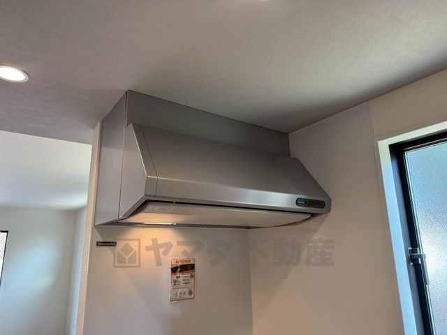 風量が弱・強と切替え可能なレンジフードが調理中の煙をしっかり吸い込みます。手元を照らすライト付きです。