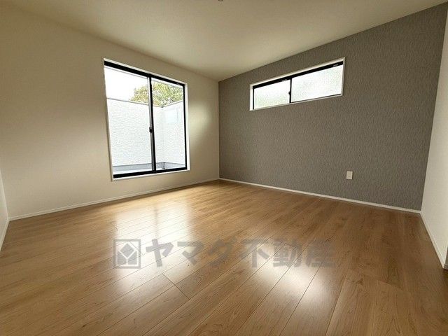 家具はイメージです。明るい洋室です。ナチュラル色のフローリングで開放的な優しい雰囲気になっています^^ベッドや机、TVを置いてもゆとりのある広さです。