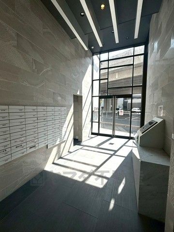 重厚感のある外観デザインが印象的なマンションエントランス。ガラス張りの開放的な入口が、住まう方や訪れるゲストを上質な空間へと迎え入れます。