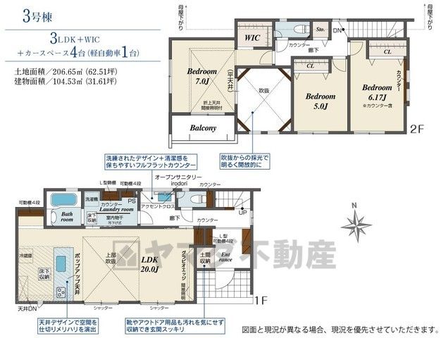 LDK20畳(1F)、洋5畳(1F)、洋6.1畳(2F)、洋7畳(2F)、洋7畳(2F) |