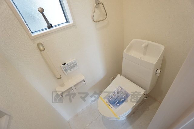 同仕様写真。温水洗浄機付トイレです。節水機能もあるので、安心して使えますね。もちろん、1階2階の2ヶ所にトイレがあるので、忙しい朝にもゆとりができますね。