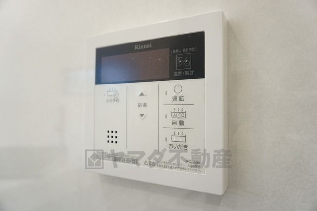 同仕様写真。キッチン横からお湯張り、追い炊き、足し湯がボタン一つで楽々操作できる給湯機リモコンです。忙しい夕飯準備の時間帯に重宝しますね。