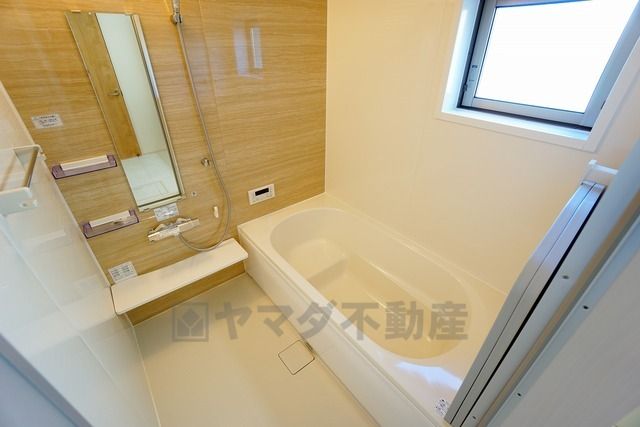 同仕様写真。1日の疲れを癒すくつろぎのバスルーム。足を伸ばしてもゆったりと入れるサイズです。お子様と一緒にお風呂に入っても狭くないですね^^