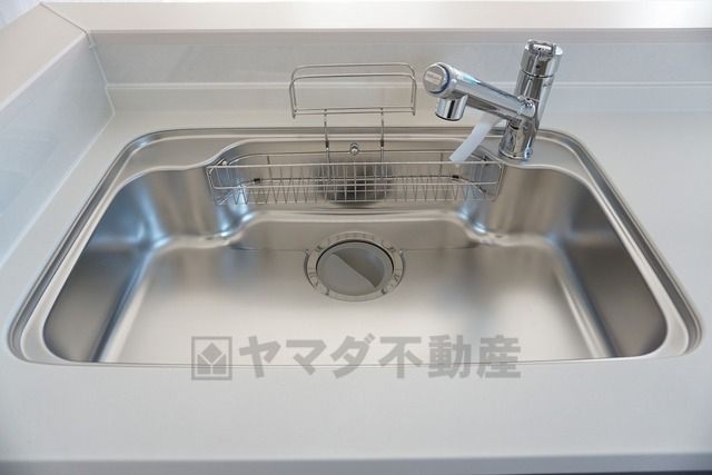 同仕様写真。大きなお鍋も楽々洗える幅の広いシンクです^^ステンレスシンクなので簡単にお掃除できますよ。洗剤やスポンジもすっきりできる収納付き。