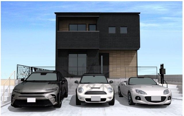 ▲E棟。完成予想図。現況と異なる場合は現況優先となります。 シンプルでいつまでも飽きのこないデザインが周囲の環境に調和し、どんなご家族にもフィットするデザインです。