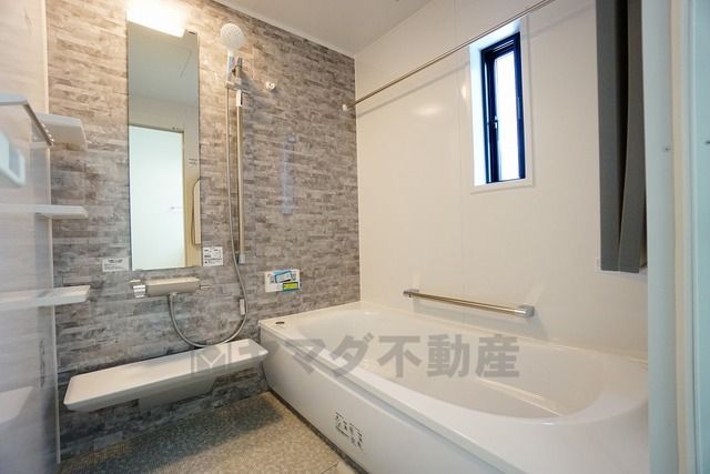 同仕様写真。1日の疲れを癒すくつろぎのバスルーム。足を伸ばしてもゆったりと入れるサイズです。お子様と一緒にお風呂に入っても狭くないですね^^