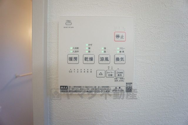同仕様写真。浴室暖房乾燥機には、暖房、乾燥、涼風、換気の4つの機能が付いています。タイマー付きです。換気・雨の日の洗濯も安心です^^