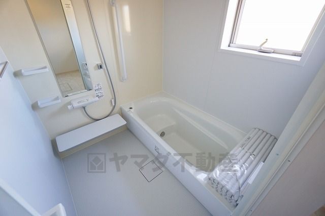 同仕様写真。1日の疲れを癒すくつろぎのバスルーム。足を伸ばしてもゆったりと入れるサイズです。お子様と一緒にお風呂に入っても狭くないですね^^
